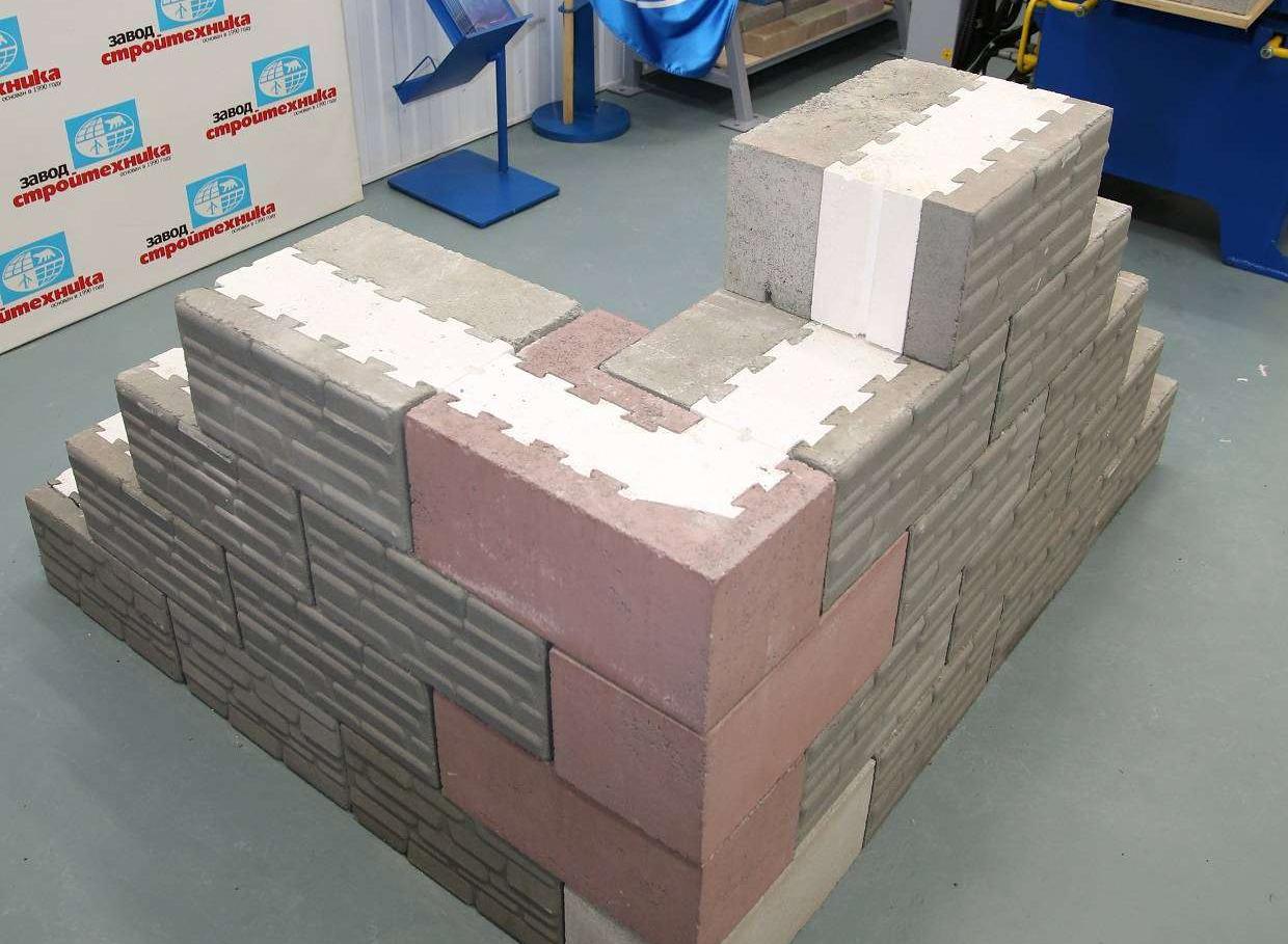 Лицевая часть теплоблока изготавливается из бетонной смеси. Форма лицевой части может быть как строго ровной, так и иметь какой-либо рисунок. Так же применяют различные красители для придания необходимого цвета.